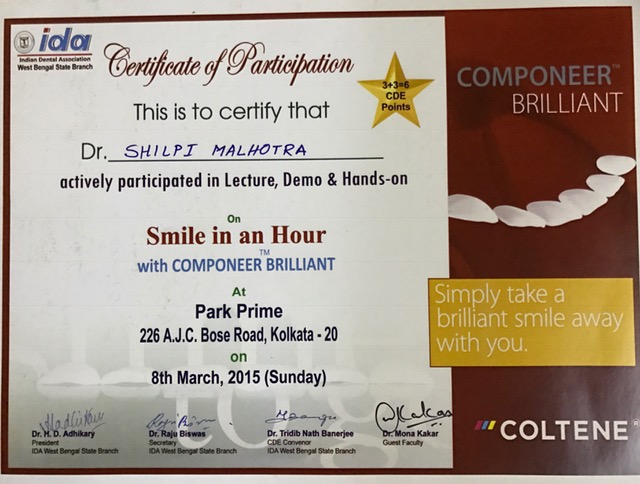 Dr Shilpi is the core committee member of the Indian Dental Association, Kolkata City Branch and has had the privilege of being ranked at first place in the Professional category by Bharat Chamber of Commerce. She is a life member of Soft Tissue Laser Academy.