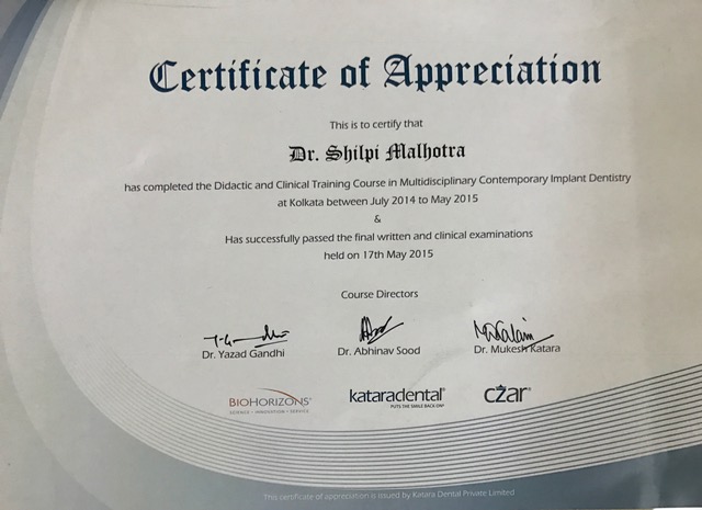 She finished her training in Dentistry from the University of MAHE (Manipal) and has undertaken various continuing dental education programs. She was amongst the first few in Kolkata to get trained for Microscopic procedures 12+ years back.
